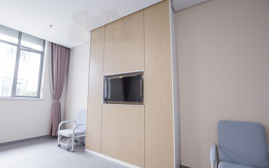 病房内床头板采用木纹表面的钢制91视频在线观看18,温馨,又不失医护功能。