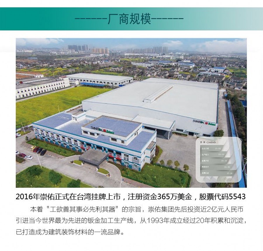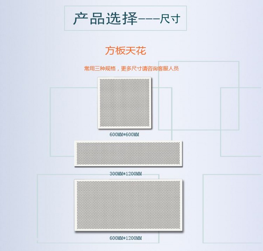 介绍:铝天花、方板天花、微孔天花、钢板天花、工程天花,嵌入式暗架系统和放置式明架系统,易拆卸,防尘隔音,崇佑品牌,行业知名品牌。